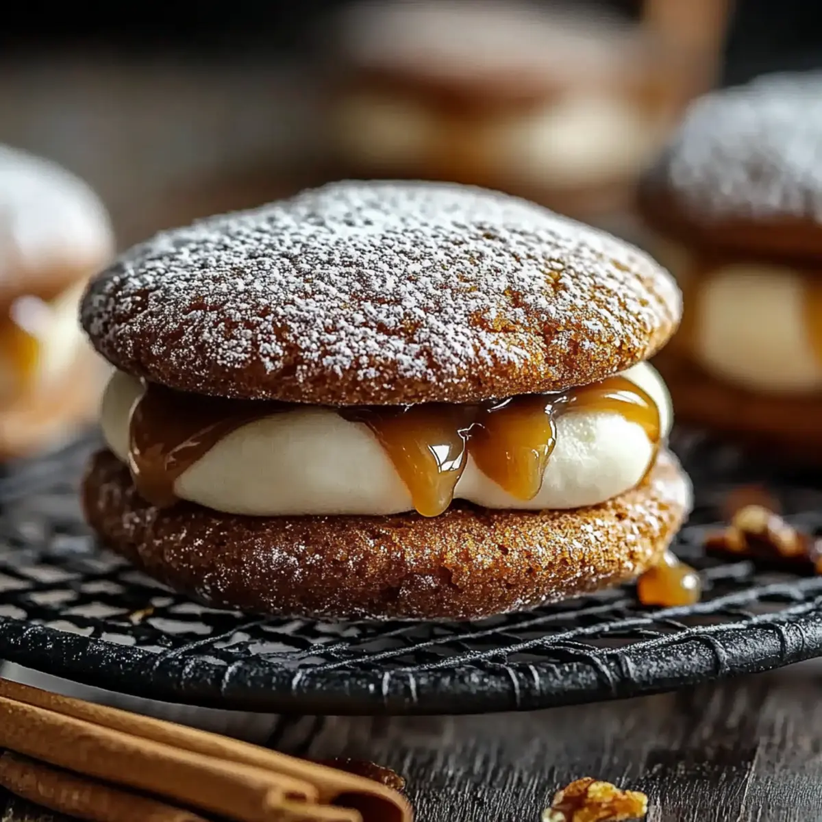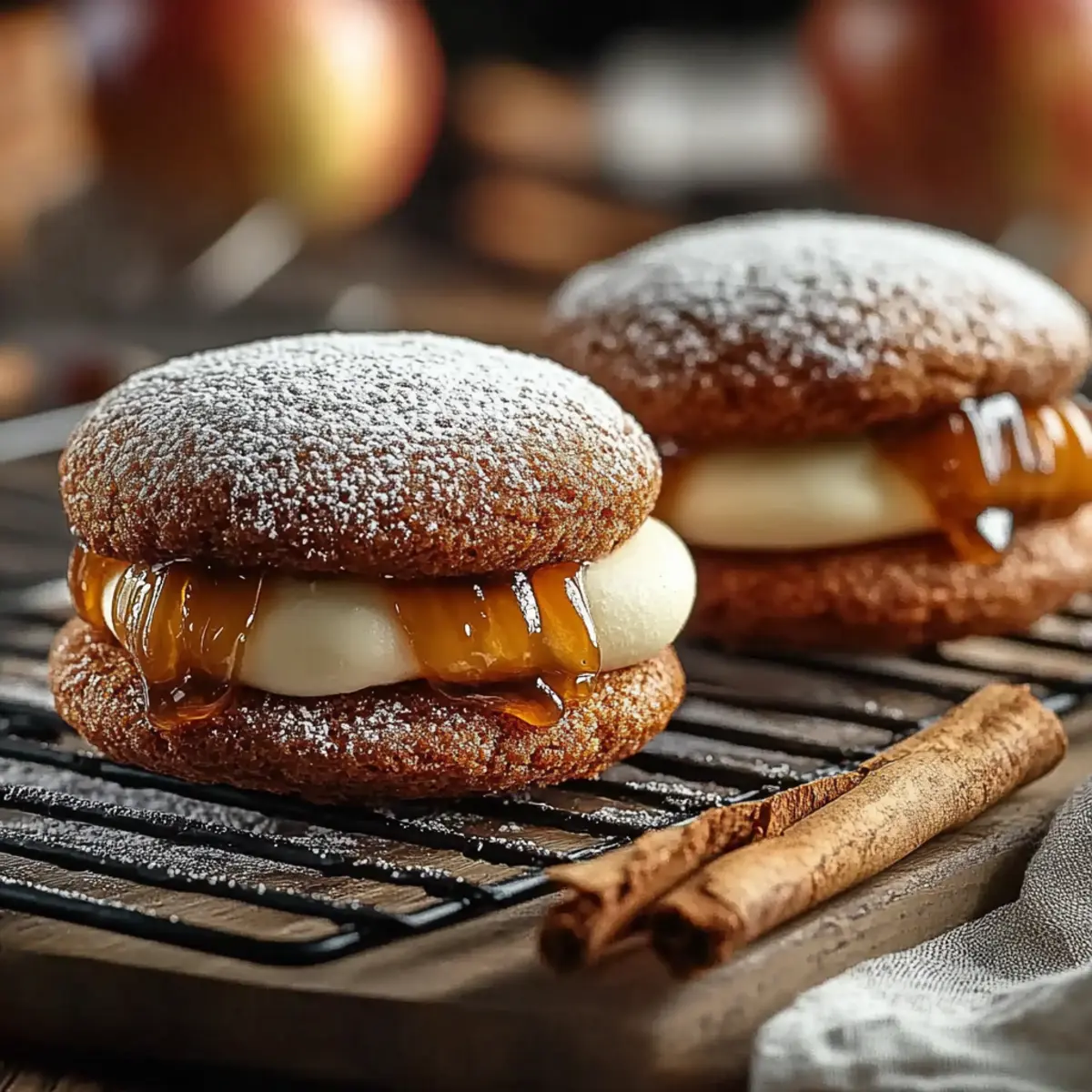 Irresistibly Soft Apple Cider Whoopie Pie Cookies with Caramel