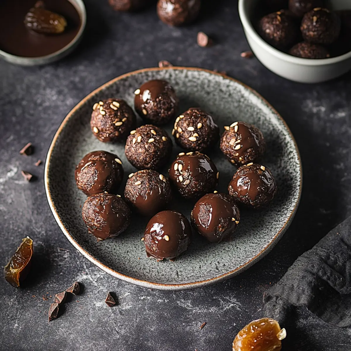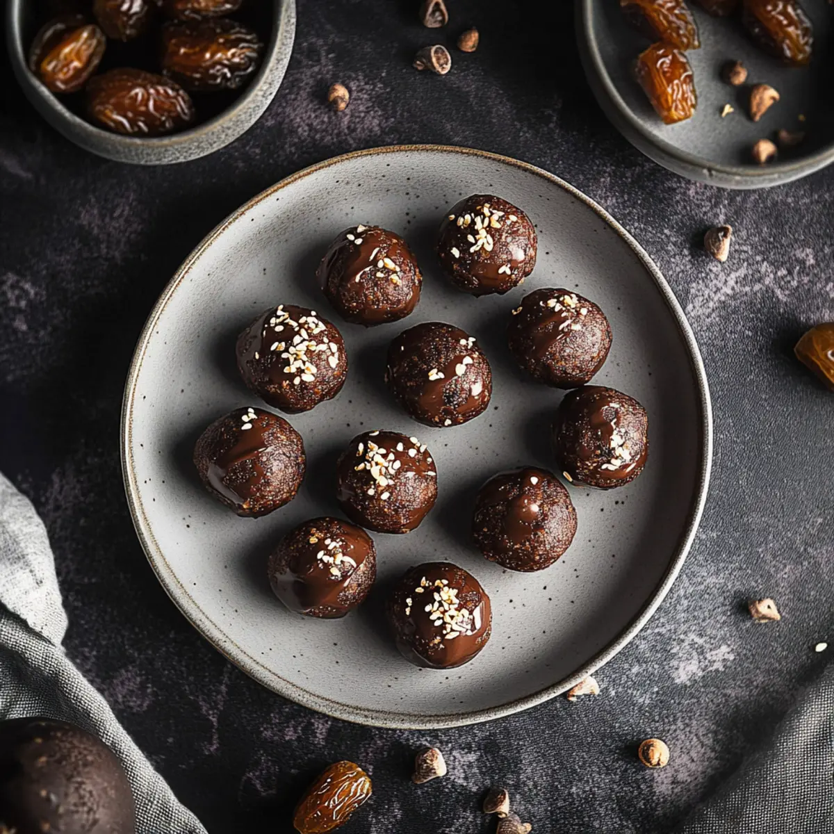 Perfect Rolling Technique: If the mixture is too sticky, wet your hands slightly while rolling to prevent it from sticking; this helps maintain the beautiful shape of your chocolate date balls.