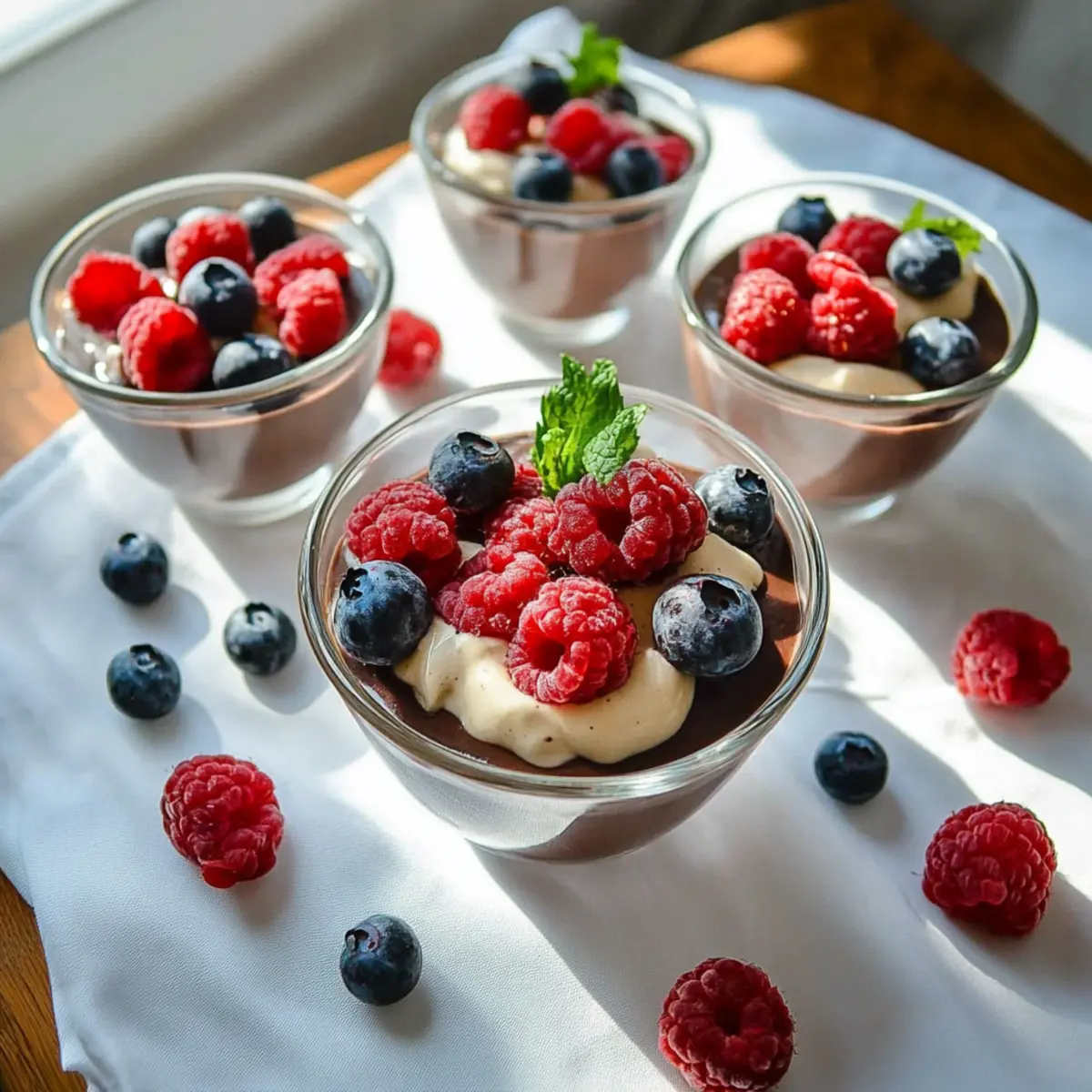 Fresh Berries: Their natural tartness complements the sweet, rich mousse, adding a vibrant pop of color and flavor.