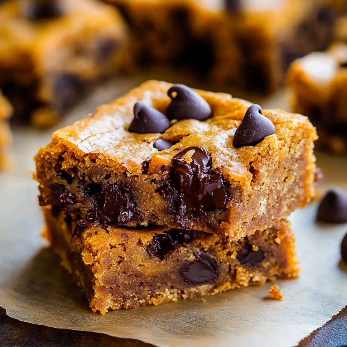 These Fudgy Pumpkin Chocolate Chip Bars are perfect for busy home cooks looking to save time! You can prepare the batter up to 24 hours in advance—simply mix all the ingredients together as you normally would, then cover the bowl tightly and refrigerate. This helps maintain freshness and flavor. When you're ready to bake, pour the chilled batter into your prepared baking pan and bake as directed, adding an extra minute or two if necessary. Alternatively, you can bake the bars in advance, letting them cool completely before slicing. Store the cooled bars in an airtight container at room temperature for up to 3 days or freeze them for up to 3 months. This way, the bars remain just as delicious and fudgy, ready for any autumn gathering!