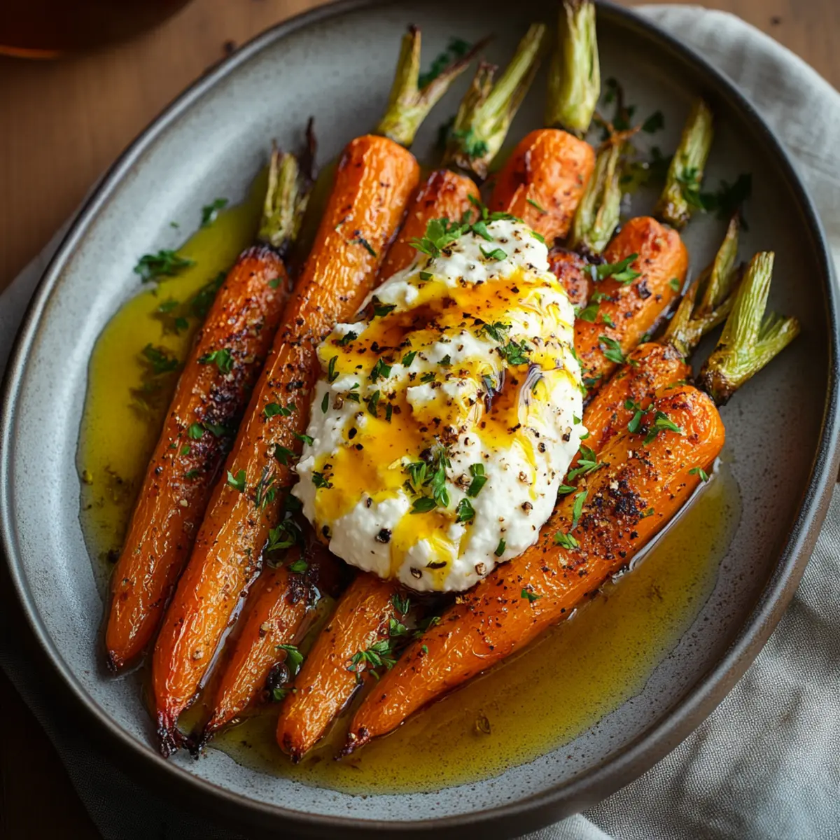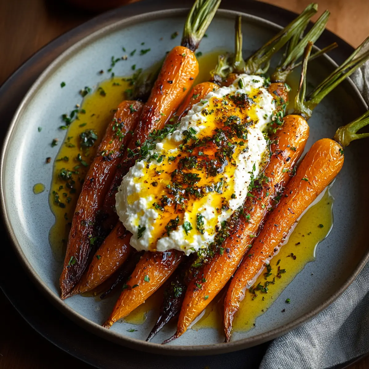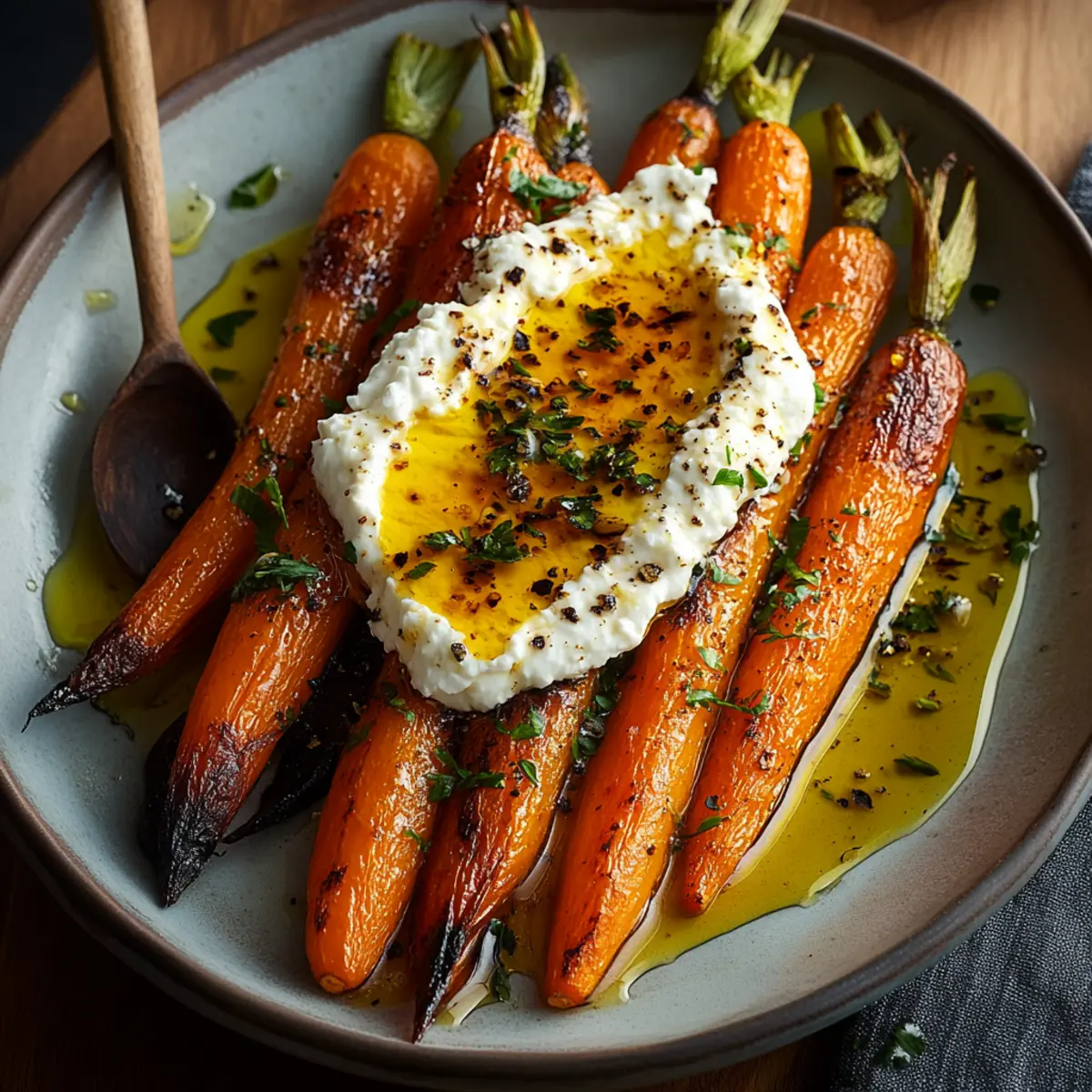 There’s a distinct warmth that fills my kitchen as I pull a tray of roasted carrots from the oven, their caramelized edges glistening with promise. This isn't just another side dish; it’s an experience wrapped in vibrant color, smooth textures, and a flavor profile that dances between sweet and spicy. As I layer the tender, golden-orange carrots with a cloud of creamy whipped ricotta and finish with a drizzle of hot honey, I can’t help but feel the excitement of a gourmet meal coming together, effortlessly.